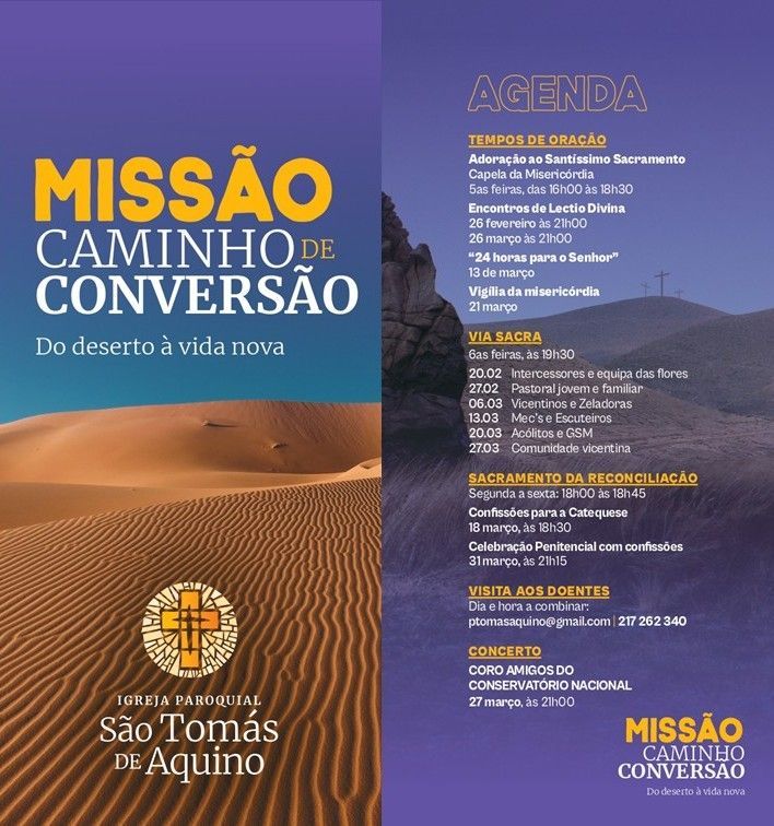 Na nossa Paróquia vivemos este tempo quaresmal sob o tema: “Missão: Caminho de conversão — do deserto à vida nova.”