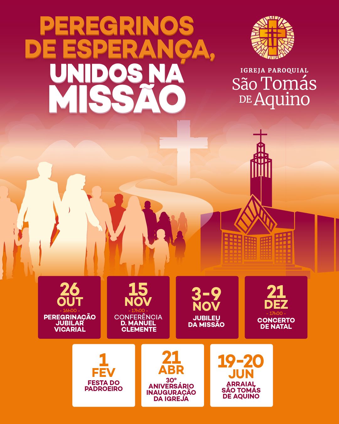 Também a nossa paróquia vive este outubro em sintonia com o nosso ano pastoral, que tem como tema: “Peregrinos de esperança, unidos na missão”. Queremos ser uma comunidade que caminha fortalecida pela fé e movida pelo Espírito, saindo de nós mesmos para anunciar o Evangelho com simplicidade, alegria e coragem.