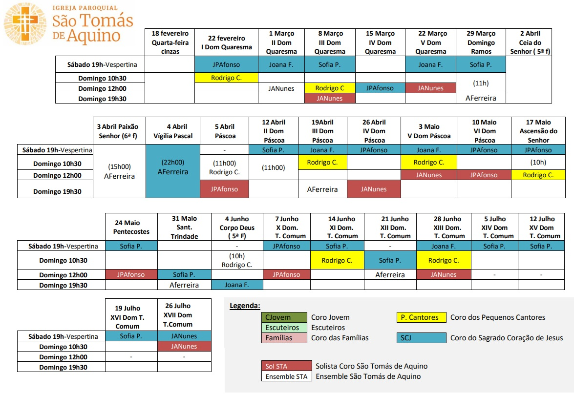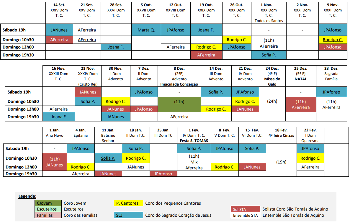 Calendário Organistas
